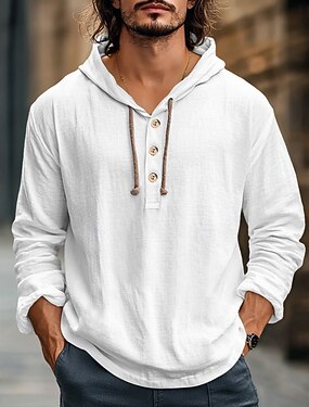 Voor heren Overhemd Linnen overhemd Strand Kleding Overhemd met knopen Overhemd met capuchon Effen Vakantie Casual Wit blauw Leger Groen Grijs Lange mouw Capuchon Zomer Lente Kleding Knop