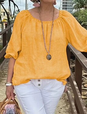 Dames Blouse Imitatie katoenlinnen Effen Kleur Stijlvol Casual Halve mouw Boothals Normale tops Dagelijks Wit Geel Groen Zomer Lente