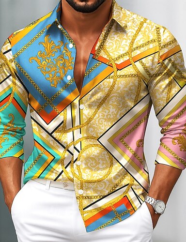 Voor heren Barok Ingewikkelde bloemen Overhemd Satijnen overhemd Lange mouw Vintage Retro Vakantie Dagelijks gebruik Zomer Lente Herfst Strijkijzer 3D-afdrukken Overhemden met knoopjes Geel blauw