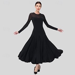 Ballroomdansen Kleding Strass Plooien Gesplitst Dames Feest Opleiding Prestatie Lange mouw Hoog Spandex Polyester