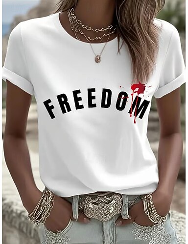 Onafhankelijkheidsdag Patriotische Vrouwen T-shirt Grafisch Letter Vlag Vintage Stijlvol Basis Korte Mouw Crew Neck Reguliere Tops Dagelijkse Weekend Print Blauw Wit Oranje Groen Zomer Lente