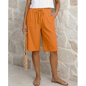 Dames Katoenlinnen Capri broeken Chinese Korte broek Vakantie Basic Casual Knielengte Natuurlijk Effen Zak Elastisch ontwerp met trekkoord Comfortabel Comfort Voor buiten Inelastisch Dagelijks Buiten