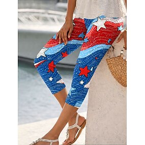 Onafhankelijkheidsdag Patriottische Dames Capri Broek Leggings Vakantie Hawaii Stijlvol Capri Middelhoge Taille Broek Grafisch Nationale Vlag Print Comfort Rekbaar Buiten Vakantie Formeel Blauw Rood