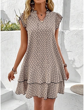 Dames Mini-jurk Casual jurk Tank-jurk Stijlvol Casual Vakantie Dagelijks Normale pasvorm Geometrisch Mouwloos Gekerfde nek Zwart Khaki Zomer