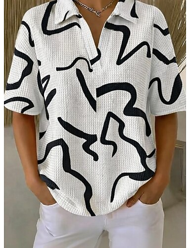 Dames T-shirt Poloshirts T-shirts Wafelgebreide tops Grafisch Effen Modieus Stijlvol Basic Korte mouw Overhemdkraag Normale tops Casual Dagelijks Uitgaan blauw Zwart Wit Oranje Groen Zomer Lente