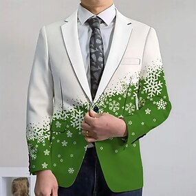 Voor heren Blazer Jas Kerstmis Straat Casual Casual / Dagelijks Herfst winter 100% Polyester Sneeuwvlok 3D-afdrukken Knop Thermisch Warm Comfortabel Enkele rij knopen Blazer Rood blauw Paars Groen