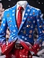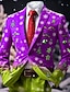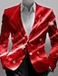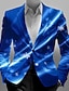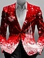 Voor heren Blazer Jas Kerstmis Casual / Dagelijks Modern Herfst winter Alle seizoenen 100% Polyester Sneeuwvlok 3D-afdrukken Knop Thermisch Warm Comfortabel Enkele rij knopen Blazer Rood blauw Paars