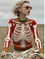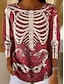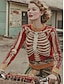 Dames Sweater Skeleton Schattige Streetwear Casual Graphic Skeleton Crew Neck Patchwork Gebreid Lange Mouw Reguliere Tops Gebreid Rood Beige Herfst Winter