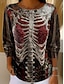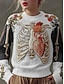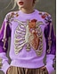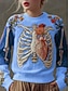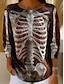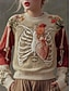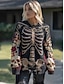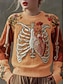 Dames Sweater Skelet Schattig Streetwear Casual Graphic Skelet Crew Neck Patchwork Gebreid Lange Mouw Regular Tops KnitBeige Herfst Winter