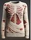 Dames Sweater Skeleton Schattige Streetwear Casual Graphic Skeleton Crew Neck Patchwork Gebreid Lange Mouw Reguliere Tops Gebreid Rood Beige Herfst Winter