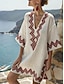 Dames Jurk met print Maxi-jurk Rood Beige Halve mouw Bloem Zak Zomer V-hals Jurken Strand S M L
