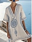 Dames Halflange jurk Zonnejurk A lijn jurk Vakantie Casual Strandstijl Feest Uitgaan Strand Ruim Passend Grafisch Geometrisch Streep Halve mouw V-hals Geel blauw Donkergrijs Zomer Lente