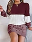 Dames Mini-jurk Trui-jurk Modieus Modern Kantoor Dagelijks Feestdagen Normale pasvorm Kleurenblok Lange mouw Strakke ronde hals Zwart Wijn Khaki Lente Herfst Winter