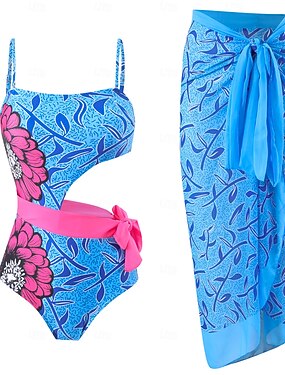 Dames Zwemkleding Een stukje Rok Zwempak Elegant Vakantie Bloemig Grafisch U-hals Mouwloos Badpakken