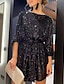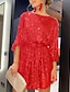 Dames Mini-jurk Feestjurk Cocktail jurk Schede jurk Modieus Modern Feest Speciale gelegenheden Avond Feest Normale pasvorm Effen 3/4 mouw Schouderafhangend Zwart Rood Goud Lente Herfst Winter