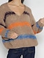 Dames Trui Stoppen Streetwear Casual Gestreept V-hals Streep Gebreid Lange mouw Normale tops breien Dagelijks Feestdagen Uitgaan Khaki Herfst Winter