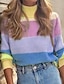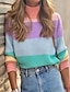 Dames Trui Stijlvol Casual Zacht Kleurenblok Gestreept Dik Strakke ronde hals Extra groot Streep Lange mouw Normale tops breien Buiten Dagelijks Uitgaan Paars Groen Herfst Winter