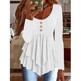 Dames Blouse Peplum Effen Kleur Stijlvol Casual Lange Mouwen Ronde Hals Reguliere Tops Dagelijks Rimpels Knopen Zwart Wit Lichtgroen Luchtblauw Oranje Zomer Lente Herfst