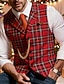 Voor heren Vest Kerstmis Vakantie Feest Kerstmis Modieus Herfst Winter Zak Knop Polyester Comfortabel Ruitjes Enkele knoopsluiting één knoop Revers Normale pasvorm Donker Rood Rood Hesje