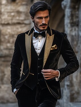 Heren Bruiloft Feest Kostuums Puntige revers Zwart Modieus Feest Effen Standaard pasvorm 3-delige set Enkele rij knopen met één knoop