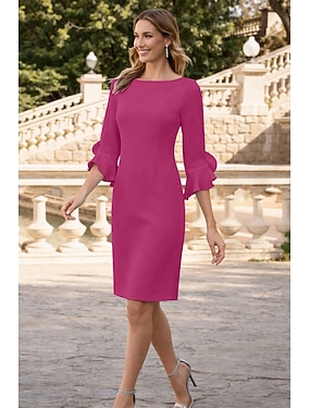 Sheath Cocktailjurken Minimalistische Jurk Cocktailfeest Knie Lengte 3/4 Lengte Mouw Edelsteen Hals Herfst Bruiloft Gast Chiffon met Rimpels Jurken