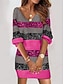 Dames Halflange jurk Casual jurk Jurk met print Vintage Afrikaanse Dagelijks Strand Weekend Normale pasvorm Bloemig Grafisch 3/4 mouw Strakke ronde hals Rood Fuchsia Bruin Lente Herfst
