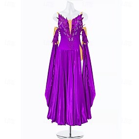 Ballroomdansen Kleding Borduurwerk Gelaagde ruches Pailletten Dames Prestatie Lange mouw Synthetische zijde