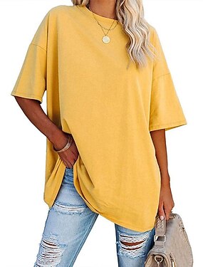 dameskleding basic oversized ronde hals t-shirts effen nieuwe kleur losse schouder mouw ronde hals korte mouw top