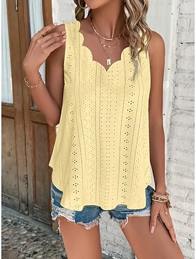 Dames T-shirt Vetergat Effen Modieus Stijlvol Klassiek Mouwloos V-hals Normale tops Dagelijks Uitgaan Weekend blauw Zwart Wit Geel Rood Zomer Lente