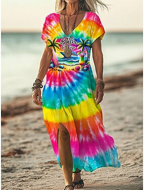 Dames Maxi-jurk Zonnejurk T shirt jurk A lijn jurk Vakantie Casual Strand Uitgaan Ruim Passend Ombre Hart Grafisch Korte mouw V-hals Geel Blozend Roze Oranje Zomer Lente