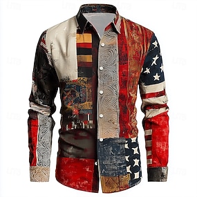 Voor heren Geometrisch Kleurenblok Lapwerk Overhemd Overhemd met knopen Lange mouw Vintage Retro Buiten Dagelijks Streetwear Lente Herfst Strijkijzer 3D-afdrukken Voorste zak Linnenachtig shirt Rood