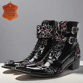 heren enkellaarsjes van premium rundleer – kleurrijke slangenprint en metalen neus western-stijl motorlaarzen