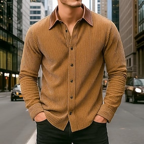 Voor heren Corduroyshirt Zwart Marineblauw Bruin Grijs Lange mouw Gestreept Strijkijzer School Opleiding Knop Kleding Vintage Casual