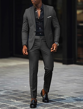Heren Smoking Feestpakken Casual liiketoiminta Grijs Herfst winter Pak Ingesneden revers Modieus Formeel Effen Strak 2-delige set