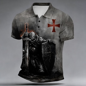 Voor heren Tempeliers Poloshirts Golfshirt Korte mouw Poloshirt Overhemden met kraag Vintage Casual Vakantiekleding Festivalkleding Feestoutfits Knop 3D-afdrukken Zwart Rood Marineblauw