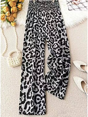 Dames Breed Been Broeken Streetwear Casual Lang Hoge taille Luipaard Opdrukken Elastisch ontwerp met trekkoord Ademend Zacht Micro-elastisch Vakantie Straat Alledaagse kleding Geel Koffie Grijs Zomer
