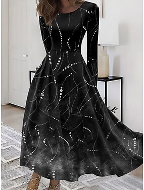 Dames Doodskoppen Print Maxi Jurk Shift Jurk A-lijn Jurk Casual Dagelijks Regular Fit Grafisch Stier Lange Mouwen Ronde Hals Zwart Paars Herfst Winter