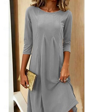 Dames Halflange jurk Hemdjurk Casual Dagelijks Ruim Passend Effen 3/4 mouw Strakke ronde hals Zwart Wijn Groen Donkerblauw Zomer Lente Herfst
