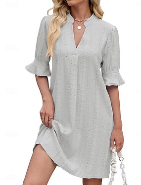 Dames Halflange jurk Witte jurk Casual jurk Cocktail jurk Bruiloft gast jurk Elegant Stijlvol Vleermuismouw Dagelijks Vakantie Afspraakje Normale pasvorm Effen Halve mouw V-hals Zwart Wit Grijs Zomer