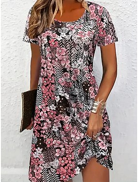 Dames Mini-jurk Hemdjurk Zonnejurk Casual jurk T shirt jurk Vakantie Casual Boho Strand Feest Past Op Maat Bloemig Grafisch Korte mouw Strakke ronde hals Zwart Rood Grijs Zomer Lente