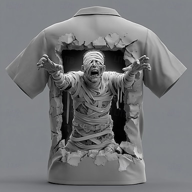 Voor heren Zombies Mummie Gebarsten muur Overhemd Overhemd met knopen Korte mouw Donkere gotische stijl Feestdagen Streetwear Zomer Lente Strijkijzer 3D-afdrukken shirts met kraag Paars Groen Khaki