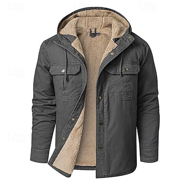 Voor heren Corduroyjack Fleecejack Sherpa jas Vakantie Dagelijks Thermisch Warm Fleece Herfst winter Effen Modieus Streetwear Revers Normaal Zwart Khaki Koffie Grijs Jacks