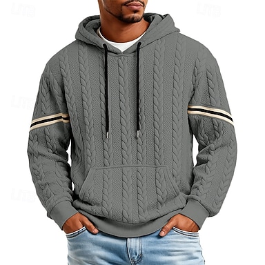 Voor heren Jacquard Trui met capuchon Zwart Wit Marineblauw Khaki Grijs Capuchon Effen Lapwerk Kangoeroe zak Met Textuur Casual Dagelijks Sport & Outdoor Streetwear Stoer Sportkleding Lente & Herfst