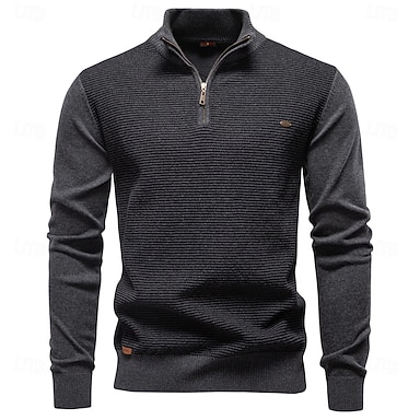 Voor heren Trui Truien met kwartrits Gebreide trui Trui met kwartritssluiting Geribd breien Normaal Gebreid Effen Halve rits Modieus Casual Alledaagse kleding Afspraakje Kleding Herfst winter Zwart