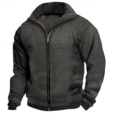 Voor heren Lichtgewicht jack Wafel jasje Vrijetijdsjas Casual Dagelijks Zak Lente Herfst Effen Streetwear Stijlvol Opstaand Normaal Zwart Koningsblauw Khaki Grijs Jacks