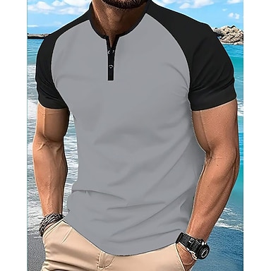 Voor heren T-shirt Henley-shirt Korte mouw Kleurenblok Wijnoogst Modieus Ontwerper Basic Knop Henley Vakantie Straat Uitgaan Zomer Donker Grijs Wijn Zwart Henley-T-shirt