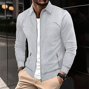 Voor heren Lichtgewicht jack Wafel jasje Vrijetijdsjas Vakantie Dagelijks Ademend Zak Lente Herfst Effen Modieus Klassiek Revers Normaal Zwart Wit Koningsblauw Khaki Grijs Jacks