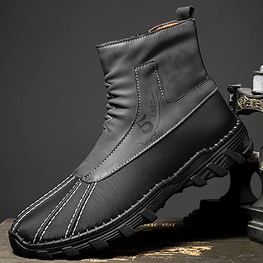 grijze winterlaarzen voor heren met ritssluiting, warme fleecevoering en waterdicht ontwerp – ideaal voor buitenactiviteiten bij koud weer