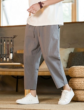 Voor heren Linnen broek Broek Zomerbroek Harembroek Trekkoord Effen Kleur Knielengte Buiten Vakantie Huis Vakantie Etnische stijl Zwart Marineblauw Lage Taille Micro-elastisch