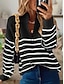 Dames Trui Vest Elegant Modieus Streetwear Grafisch Gestreept Capuchon Zak Gebreid Afdrukken Lange mouw Normale tops breien Buiten Dagelijks Weekend Marineblauw blauw Herfst Winter